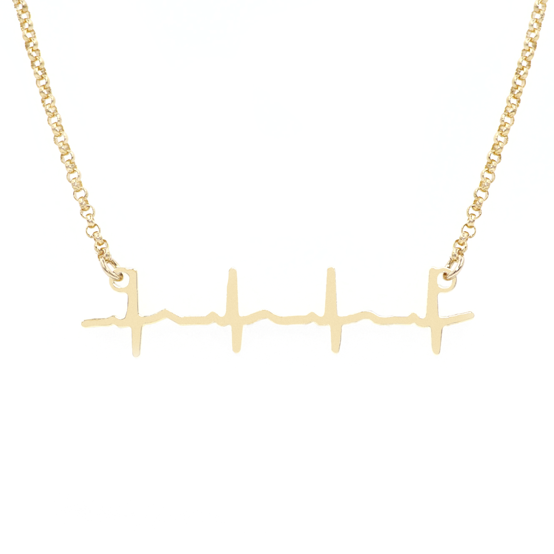 Available sizes are 16″, 18″, and 20″ (406mm, 457mm, and 508mm). Size is entire length of the necklace including the heartbeat. Heartbeat is approximately 1.5″ (38mm) in length with the height varying depending on the heartbeat. Ships in 2 to 4 weeks.
